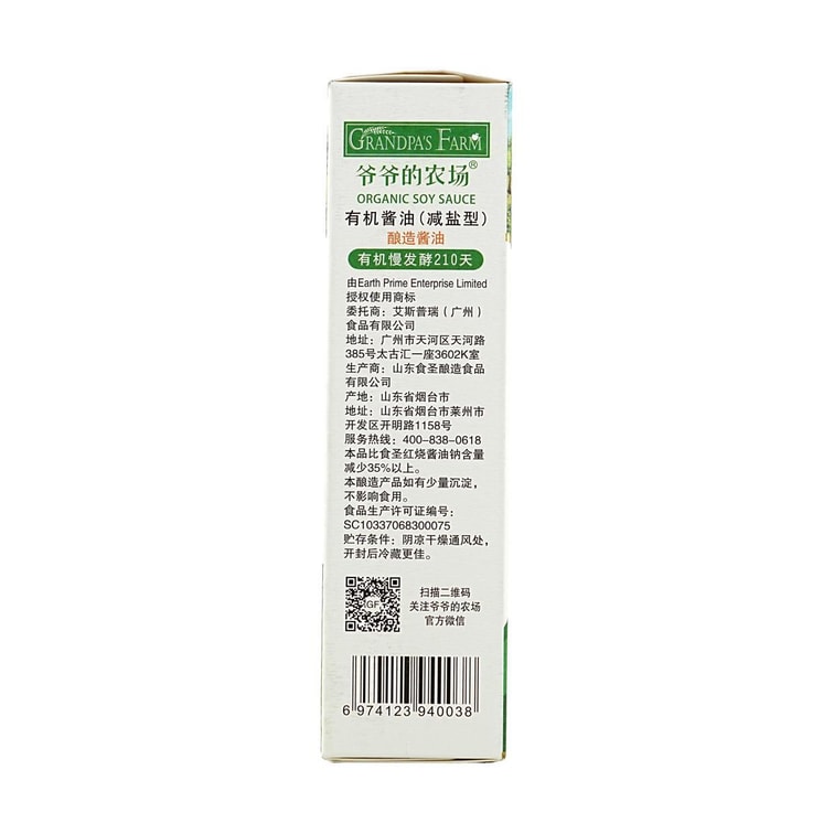 爷爷的农场 有机酱油 减盐酱油宝宝调味料 辅食拌饭酱油 152ml
