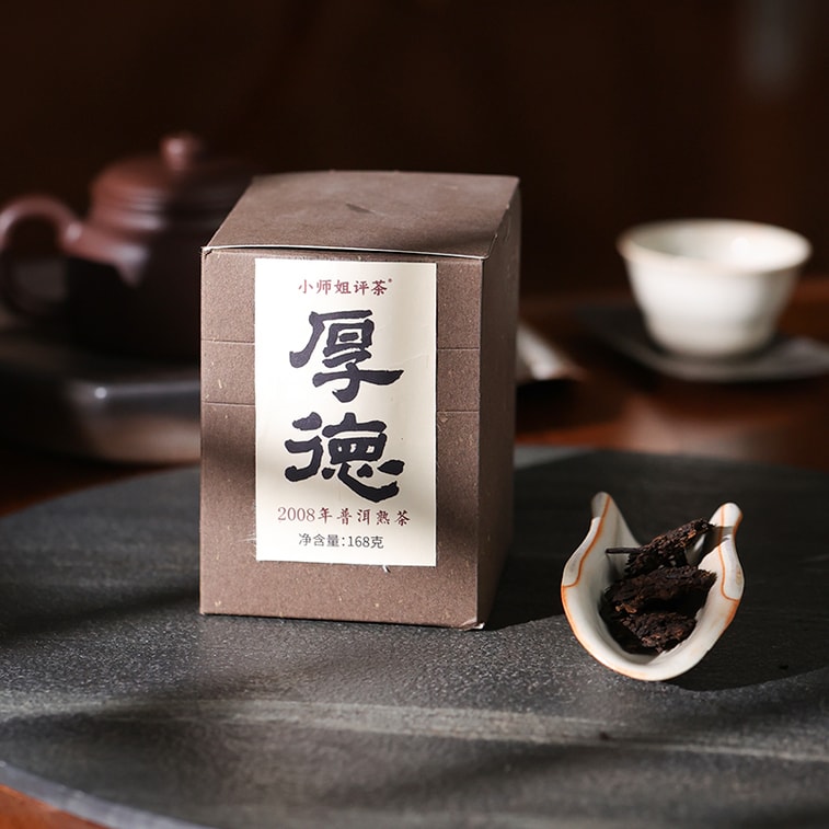 小师姐评茶 【美国现货秒发】2008年厚德熟普洱茶块 老茶陈香 春芽嫩叶 手工采摘 醇厚顺滑 暖身生津 回甘悠长 清爽干净 168克