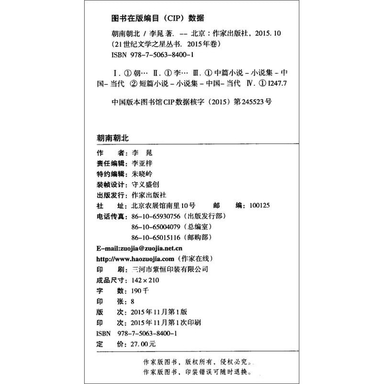 朝南朝北(中短篇小说集 2015年卷) | 亚米