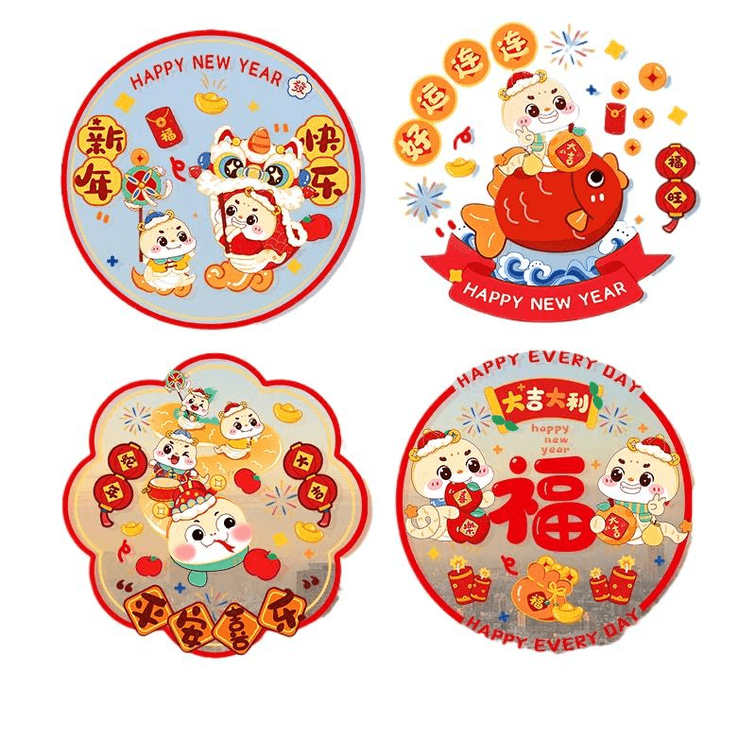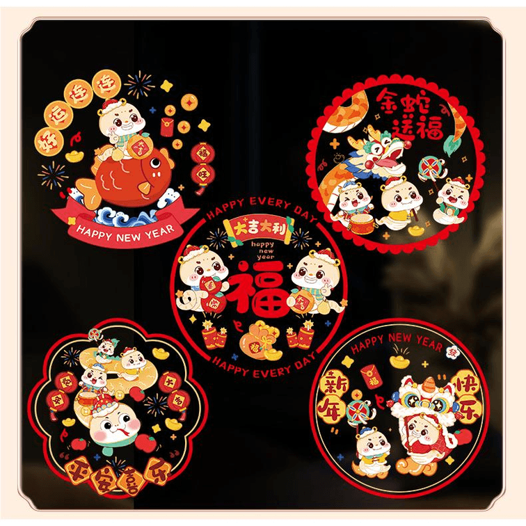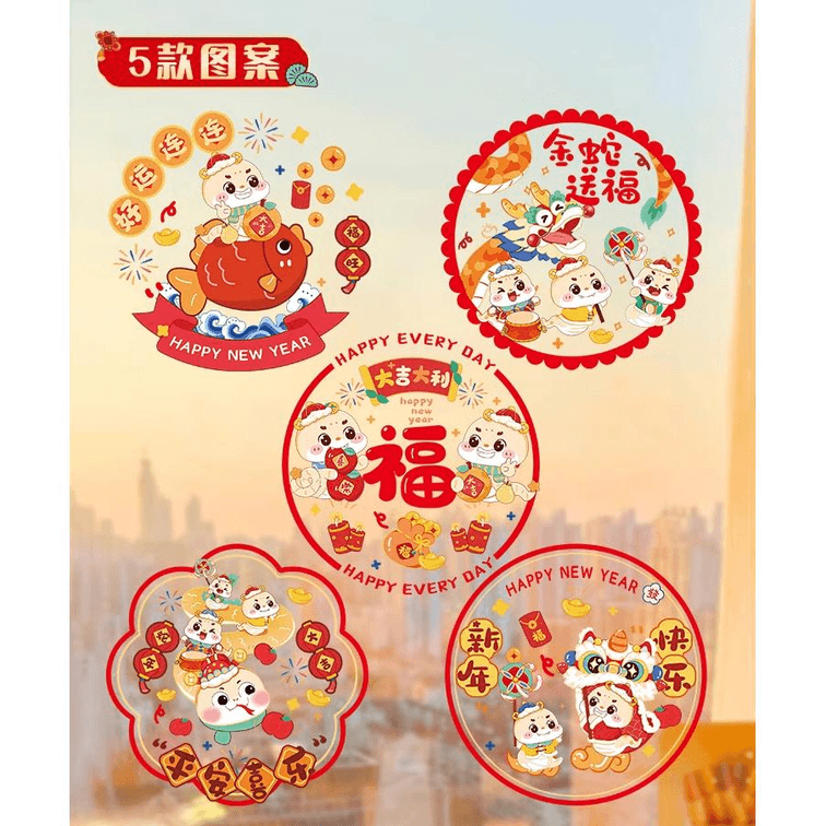 【中国直邮】2025新款蛇年窗花静电贴新年好运连连福字门贴玻璃贴窗贴春节年货装饰28*28cm10张*1袋