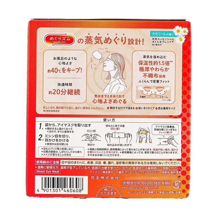 日本KAO花王 美舒律焕新温热循环款 蒸汽眼罩 助眠透气 热敷护眼贴 缓解疲劳去黑眼圈 #洋甘菊香 12枚入【2025升级版】