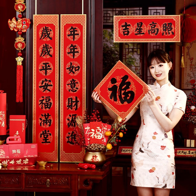 产品内容:包含福字,红包,窗花,共12件套礼盒装。