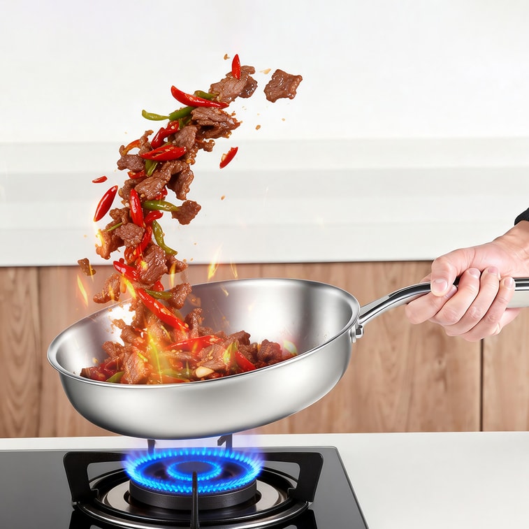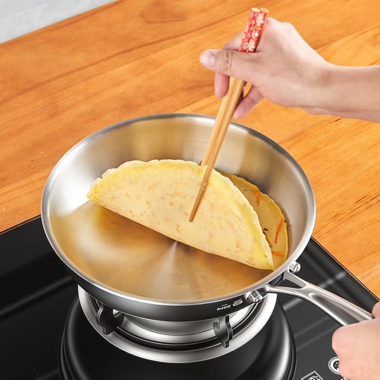 王源吉 【新手友好】26cm不锈钢煎盘,无涂层耐折腾,平底稳当不挑火,一擦就干净,1.1kg轻量随行,户外携带也方便