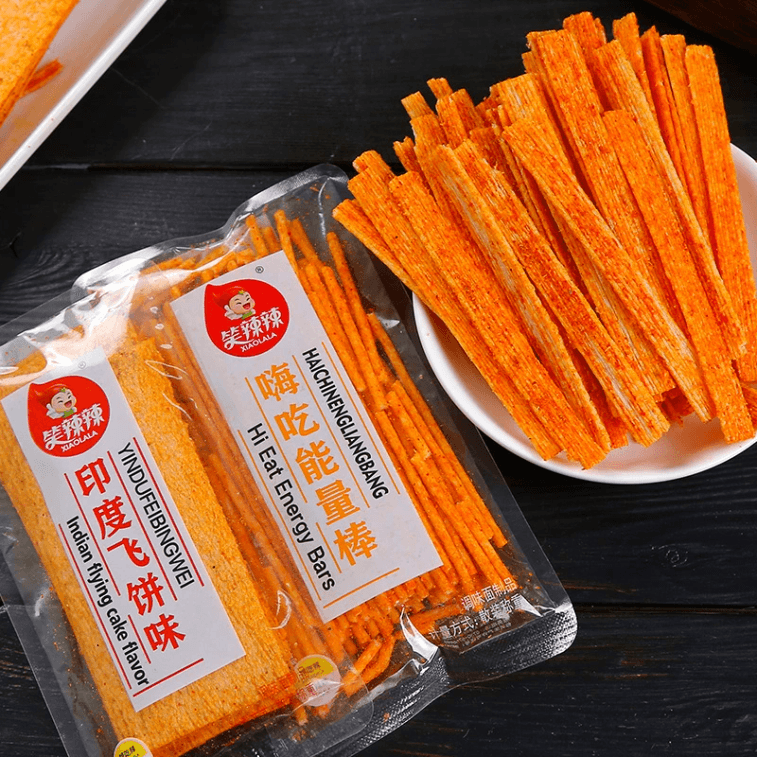 【中国直邮】 笑辣辣 印度飞饼辣条嗨吃脆辣棒怀旧小零食小吃老式大辣片休闲食品 3种口味各1包 30g*3包