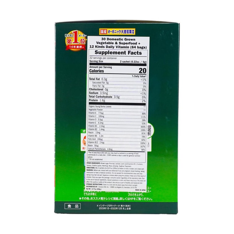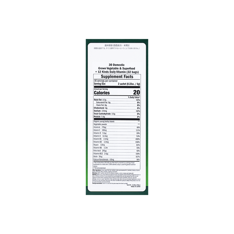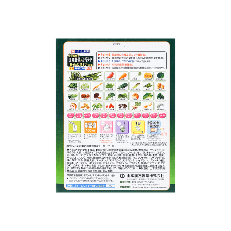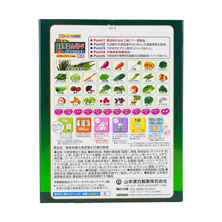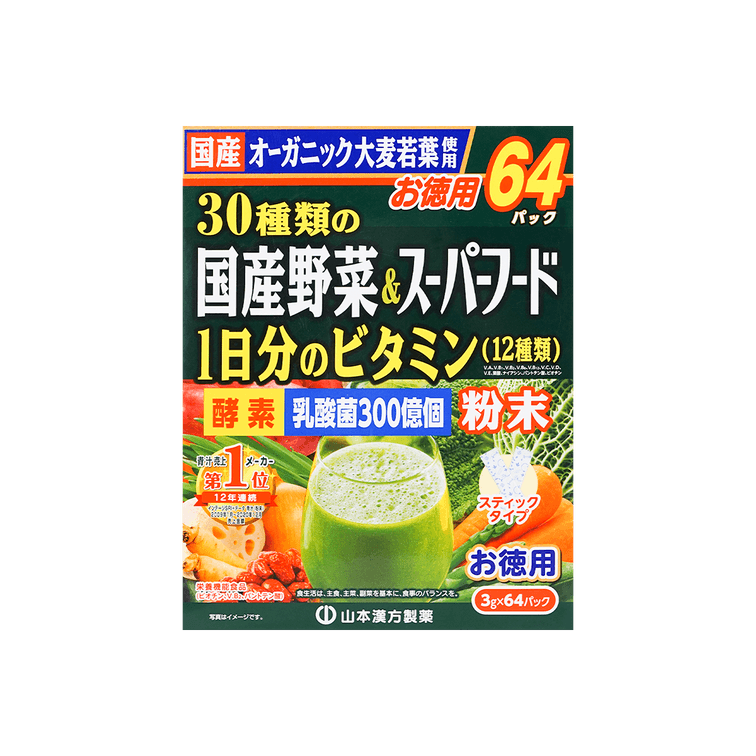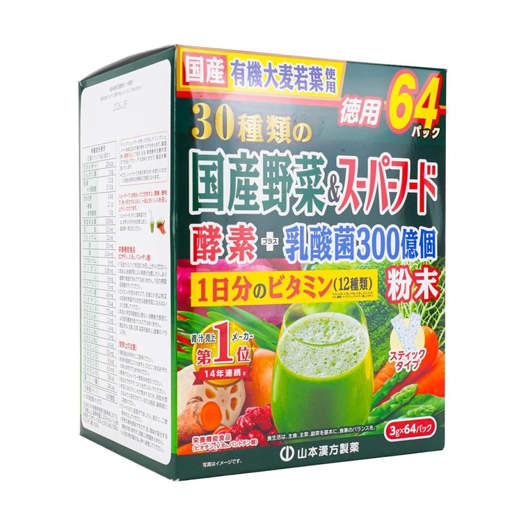 日本YAMAMOTO山本汉方制药 30种蔬菜+每日维生素青汁 含300亿个乳酸菌 64包入