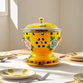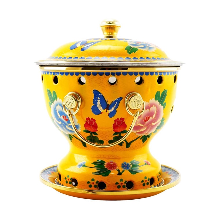 浴见你 珐琅肥牛锅 火锅 黄底牡丹+304不锈钢内胆