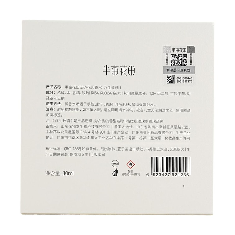 半亩花田 空谷花园香水 高定大师香水 初恋少女香 8H持久留香 30ml #浮生玫瑰 少女的梦是带着绿意的玫瑰星云