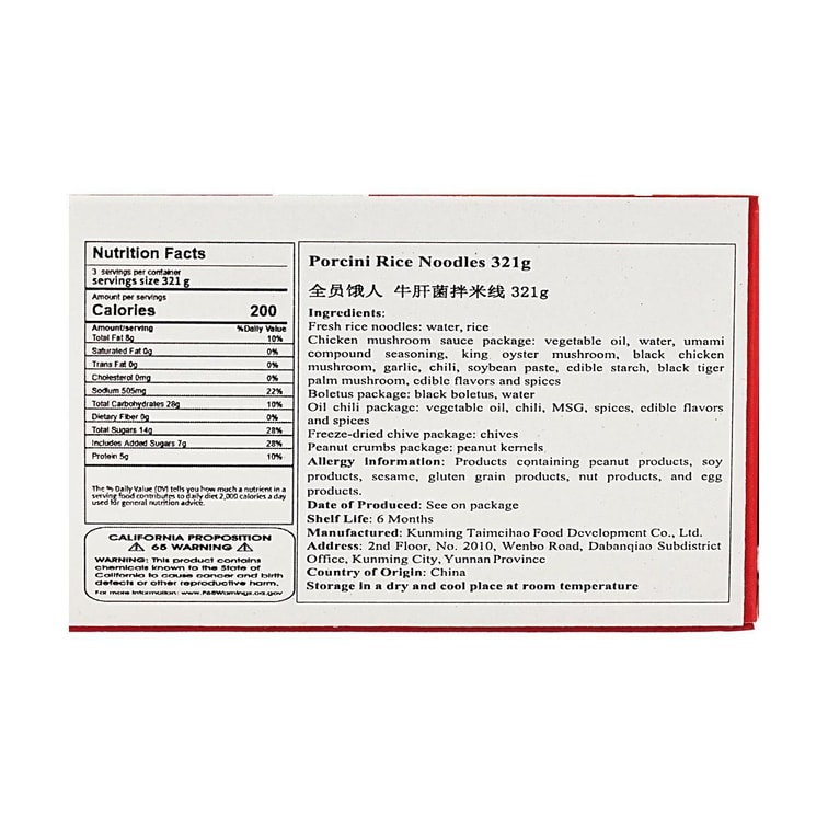 全员饿人 牛肝菌拌米线 正宗干拌云南米粉 321g【厚切牛肝菌 猛火鸡枞酱】【过瘾6包料】【亚米独家】