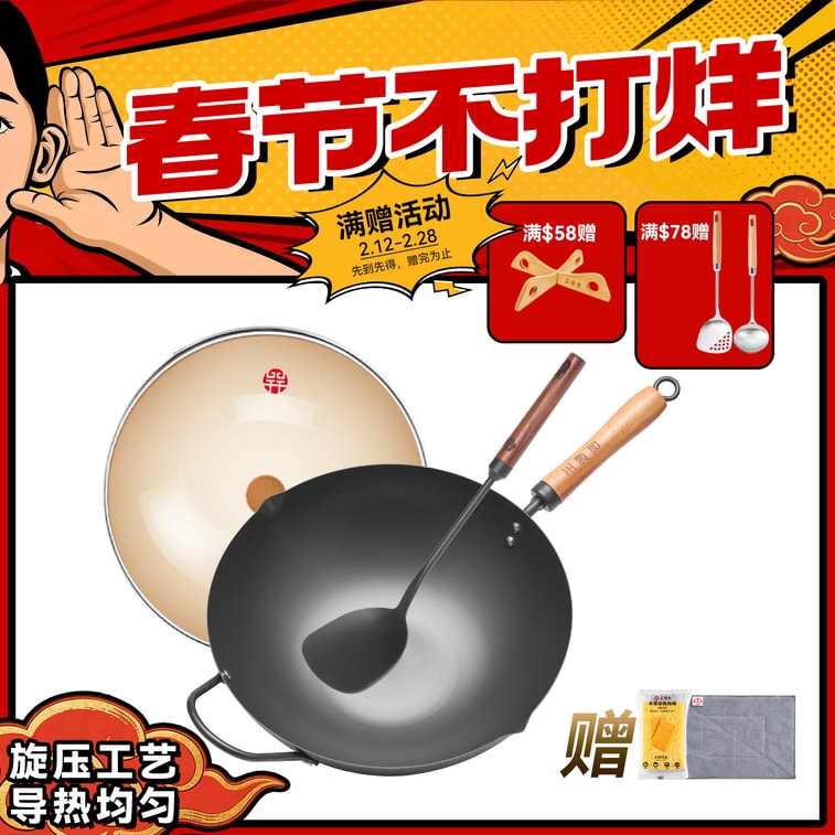 王源吉 ⭐开学好物⭐【旋压精铁锅】 33cm 媲美千元极铁锅 精铁铁铲 加厚锅底 0涂层 3倍不锈