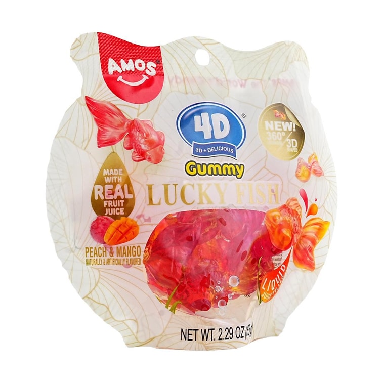 AMOS阿麦斯 4D金鱼造型 爆汁夹心软糖 橡皮糖 混合水果味 65g【考试必备好运糖果】