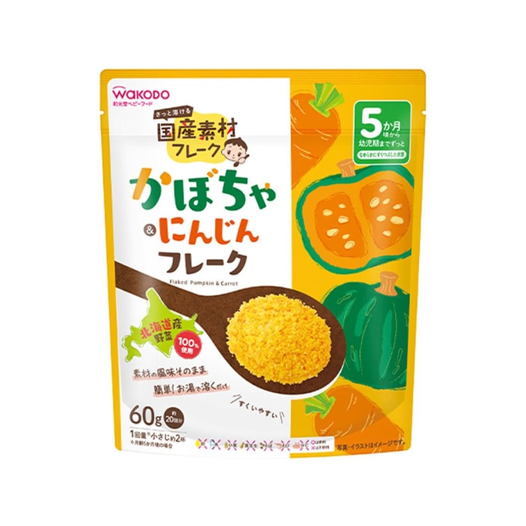 【日本直邮】WAKODO和光堂 健康米糊5个月+宝宝辅食蔬菜粉 南瓜+胡萝卜粉 60g