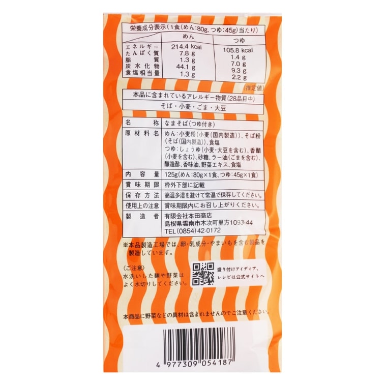 【日本直邮】日本 本田屋 5袋 NAMEN 麻辣荞麦拌面