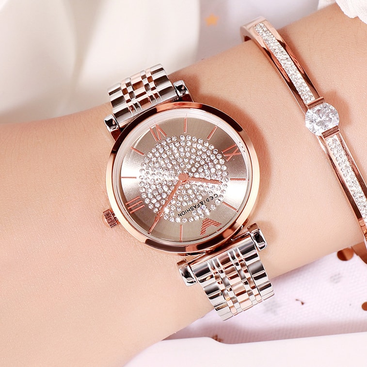 中国直邮 歌迪GEDI 爆款满天星品牌女士镶钻女表时尚潮流防水手表 玫瑰金壳灰盘
