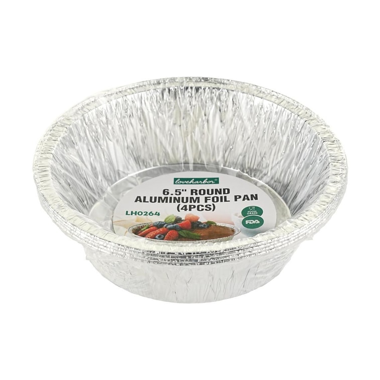 LOVE HARBOR 6.5 英寸圆形铝箔盘 一次性蛋糕烘焙烧烤餐盘 4 件套