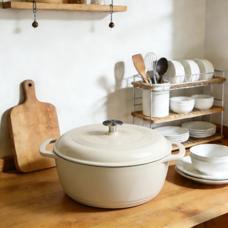 Cinnamon Home 珐琅锅聚热保温,锁汁入味,微压烹饪。锅体厚重,密封性好,保留食材的水分、营养和美味,将其锁于锅中,还原食物的原汁原味。多功能锅具,焖炖烤煎炒,一锅搞定。经久耐用,热量分布可靠,从鲜嫩的炖菜到松软的面包,每道菜都能做出最好的味道。