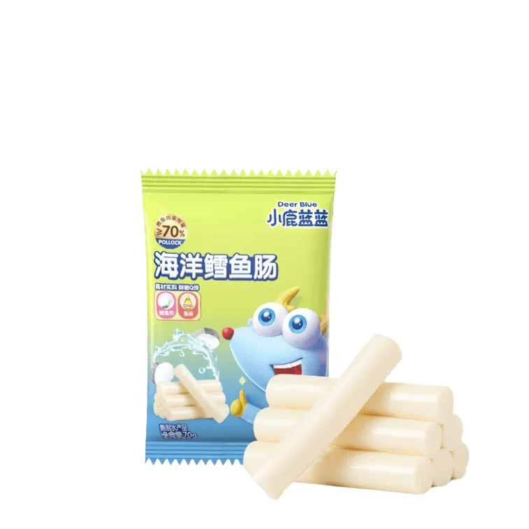 【中国直邮】小鹿蓝蓝 ≥70%鳕鱼肉 原味鳕鱼肠 70g 1袋装