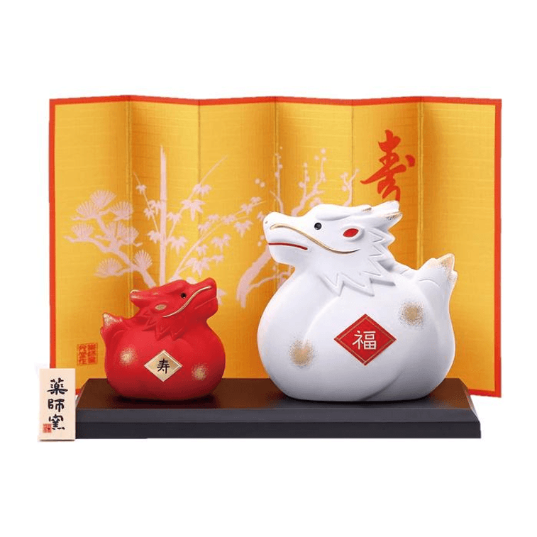 【日本直邮】 药师窑 锦彩招福龙摆件 福寿龙一对