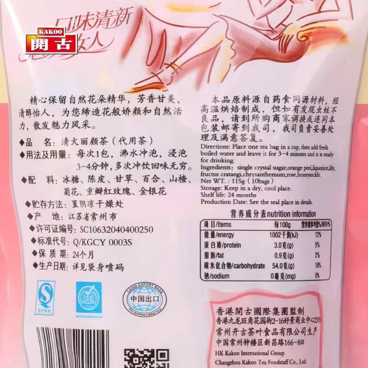 开古 清火丽颜茶 清新怡人 芳香四溢 115g