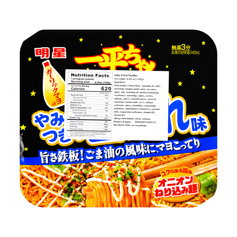 日本MYOJO明星 超级王牌拉面 一平酱 夜店炒面 胡椒盐蛋黄酱味 130g*5【5盒装】(不同包装随机发)