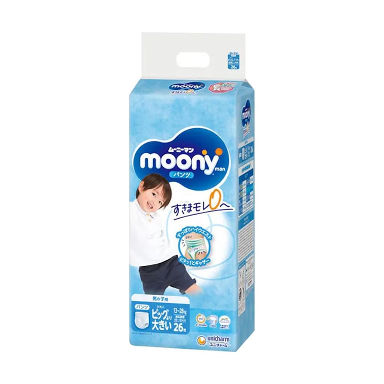 日本MOONY尤妮佳 拉拉裤 XXL 13-28kg 26片入 畅透Air Fit系列 男童学习裤 超薄小内裤