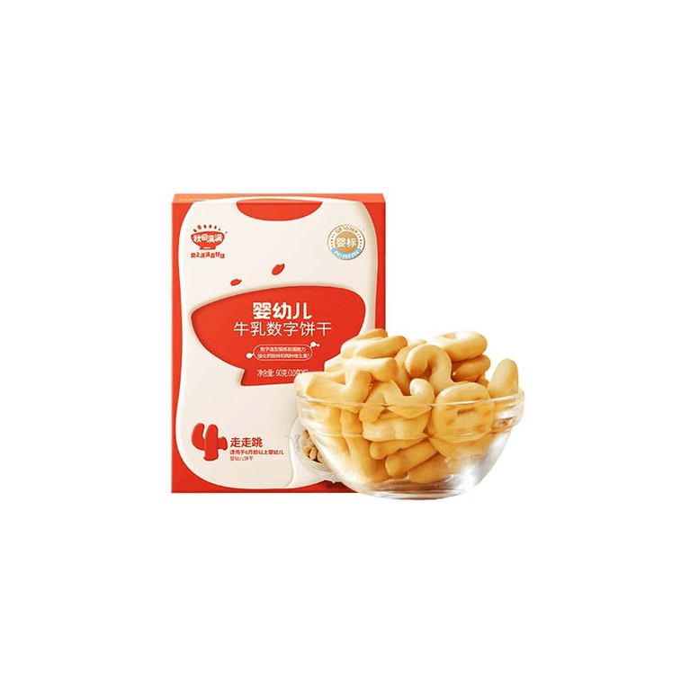 【中国直邮】秋田满满婴儿营养牛乳数字饼干无白砂糖添加婴幼儿宝宝零食辅食60g*1盒 | 亚米