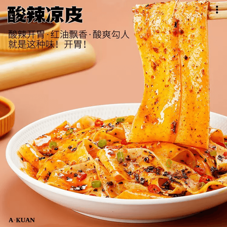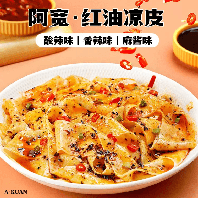 【中国直邮】阿宽红油面皮泡面干拌面麻酱味酸辣味方便面宽面凉皮 香辣面皮95g