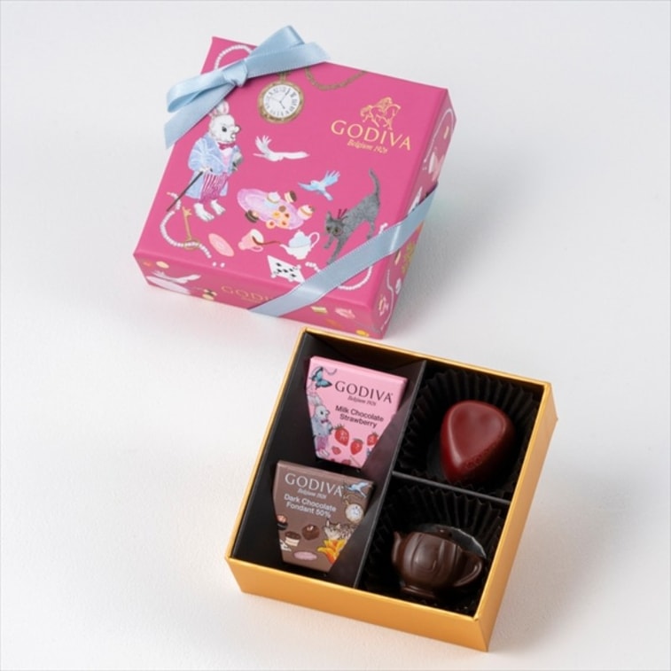 【日本直邮】 比利时 GODIVA 日本 2026情人节 期间限定 爱丽丝下午茶系列 经典巧克力礼盒 4粒装