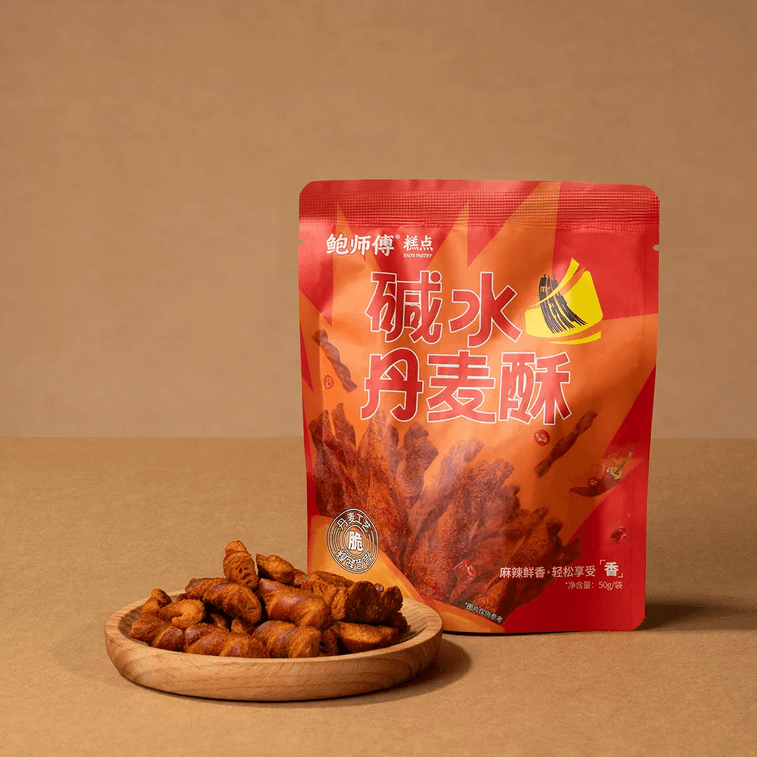 鲍师傅 碱水丹麦酥 麻辣味 50g *5【5份超值装】【黄油起酥辣条】【麻辣鲜香 酥脆解馋】