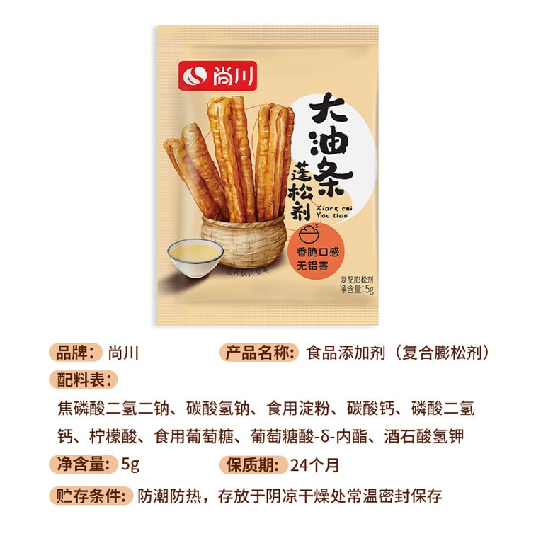 【中国直邮】 尚川 脆皮油条膨松剂5g*5包 无铝害油条粉酥脆剂 家用炸油条烘焙 | 亚米