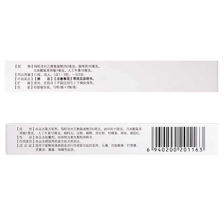 【中国直邮】 仁和 氨咖黄敏胶囊 发热头痛鼻塞咽痛退烧药退热药感冒药 24粒/盒