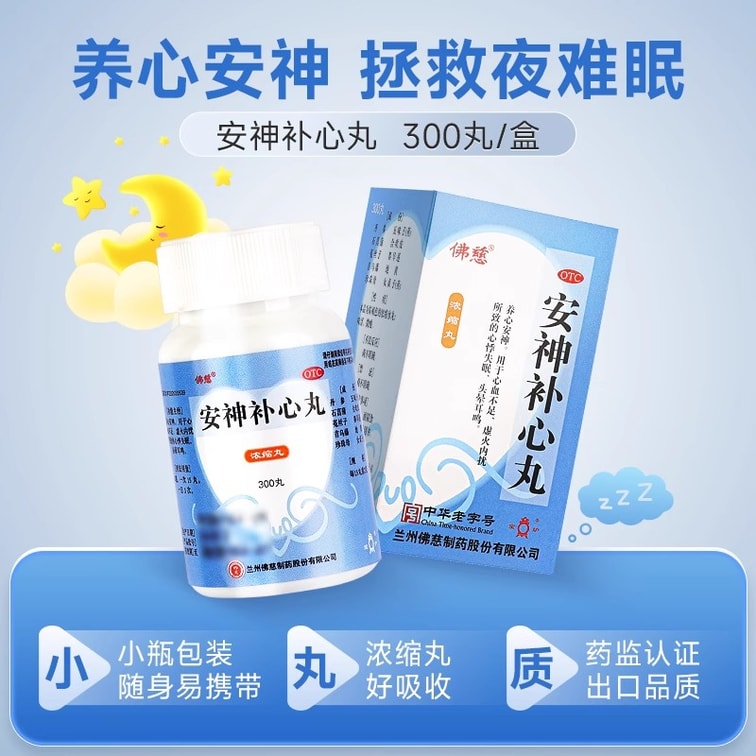 【中国直邮】 佛慈 安神补心丸 中药治失眠养心安神安眠心悸心慌失眠易醒失眠多梦300丸*1瓶/盒