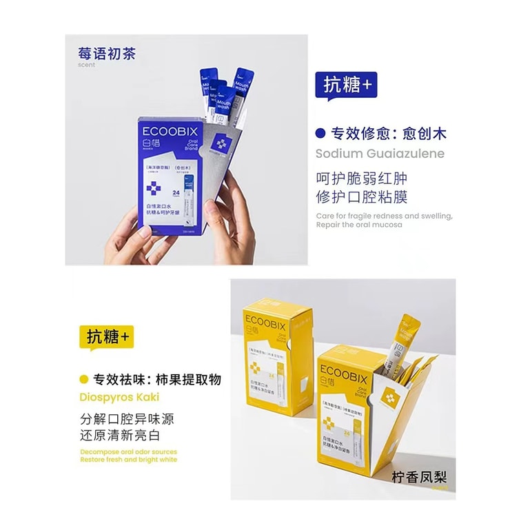【中国直邮】白惜 抗糖漱口水便携式条装益生菌清新口气小支漱口水护龈 莓语初茶14ml*20条