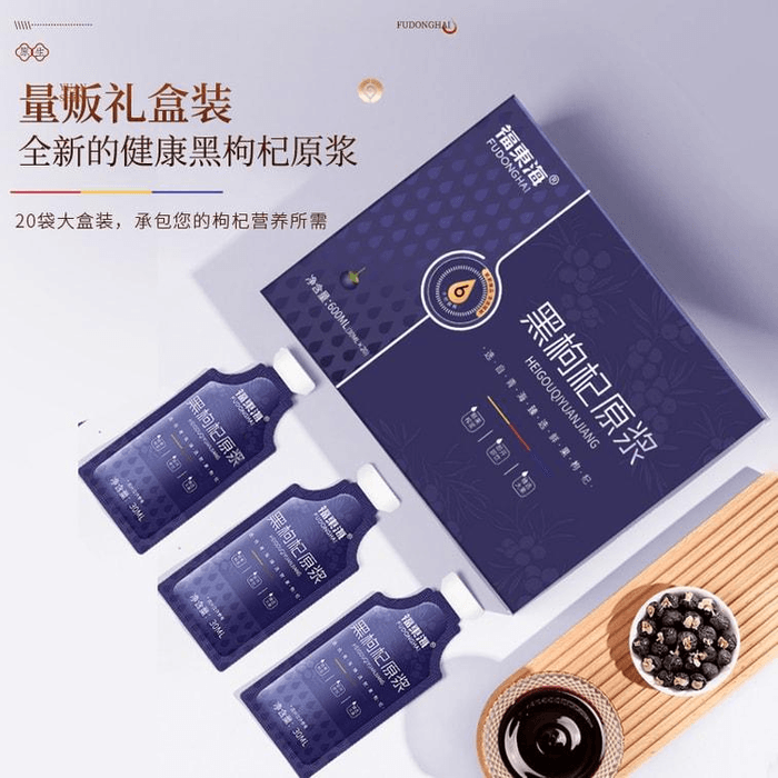 【中国直邮】 福东海 新年 送长辈礼盒黑枸杞原浆汁液鲜果生榨纯果浆枸杞具有抗衰老、改善睡眠、增强免疫 30ml*20袋 | 亚米