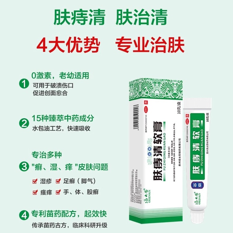 【中国直邮】 绿太阳 肤痔清软膏 消痔疮药膏 苗药除湿止痒手足癣体股癣儿童湿疹 10g