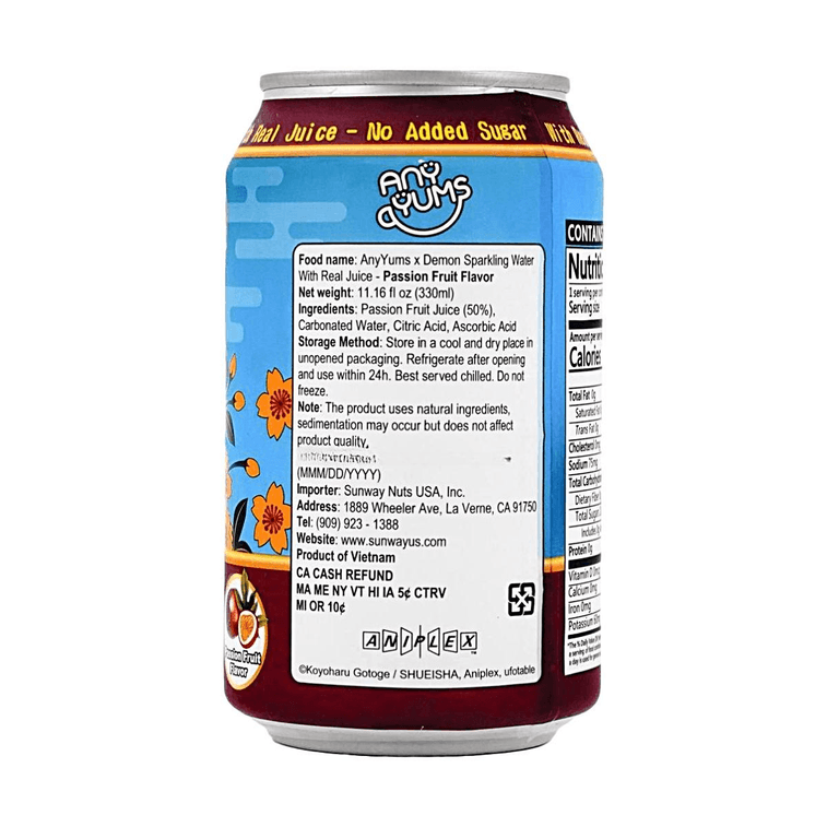 越南版ANYYUMSx鬼灭之刃联名 气泡水 百香果味 330ml | 亚米