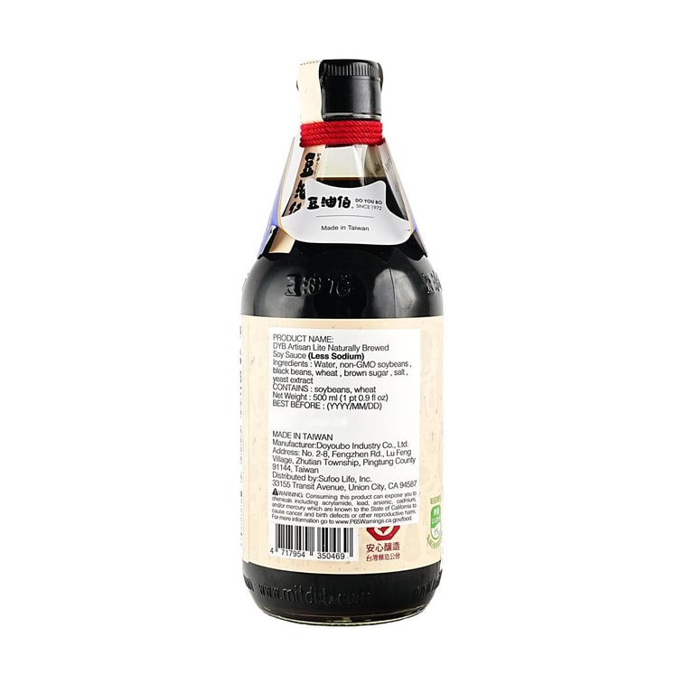台湾豆油伯 甘田薄盐酿造酱油 500ml【减盐配方低钠】