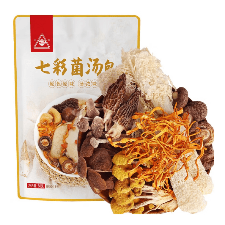 【中国直邮】 川珍 七彩菌汤包 菌菇火锅食材汤料包山珍羊肚菌煲汤食材云南特产60g