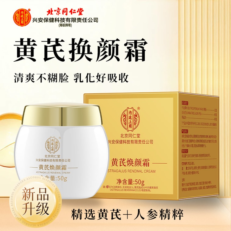 北京同仁堂 黄芪霜50g【精选黄芪、人参+牛油果树果脂、白池花籽油、角鲨烷三重奢养成分】全新升级黄芪焕颜霜保湿紧致抗皱祛黄嫩肤【舒颜靓肤、横扫暗黄肌】