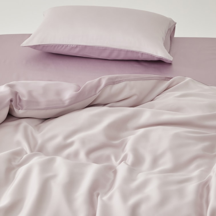 Lullabuy 云涧丝语天丝素色床上四件套 床品床单被套枕套 烟紫-Double/Queen Size