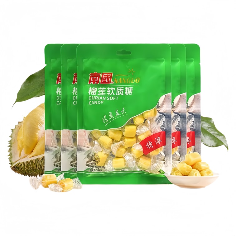 【中国直邮】 南国 海南特色榴莲软糖 82g*5袋 浓醇果肉风味 软糯不粘牙喜糖零食食品