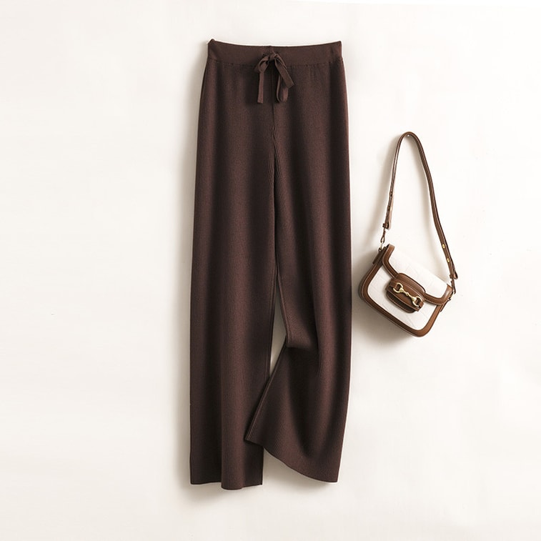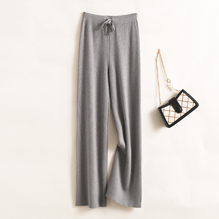 【中国直邮】 奢笛熊 秋冬新款韩版高腰纯色休闲高弹针织阔腿裤 灰色 均码