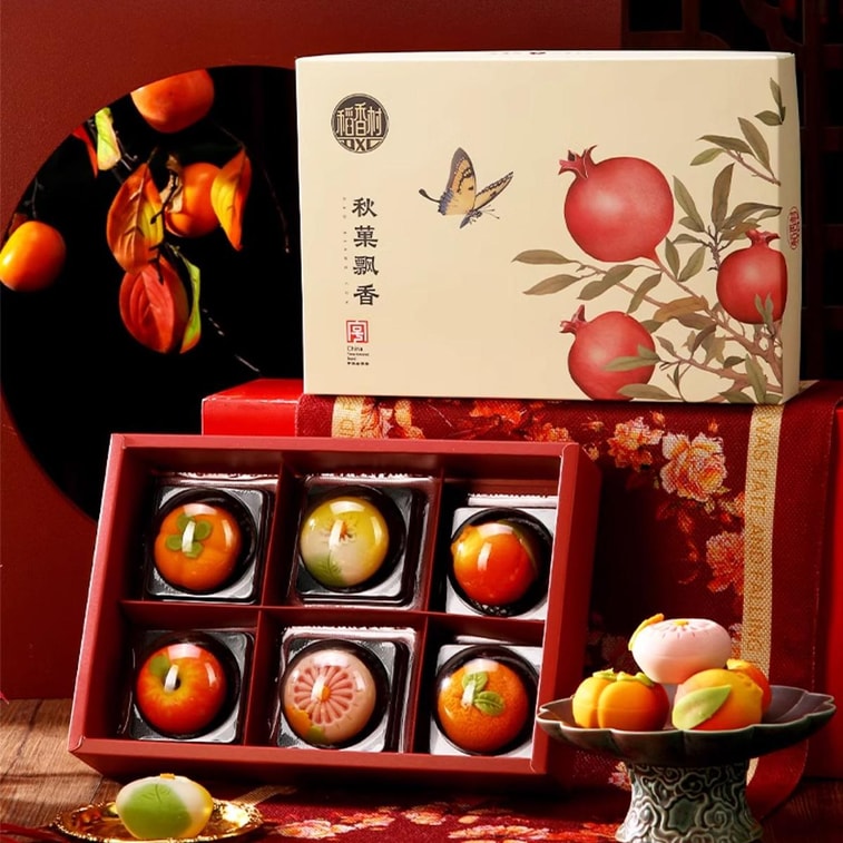 稻香村 秋果飘香糕点礼盒 6枚 300g【柿事如意桃山饼+阳光葵花桃山饼+榴花似火桃山饼+平安果桃山饼+秋叶雏菊桃山饼+大橘大利桃山饼】【全美独家】【春节年货必买】