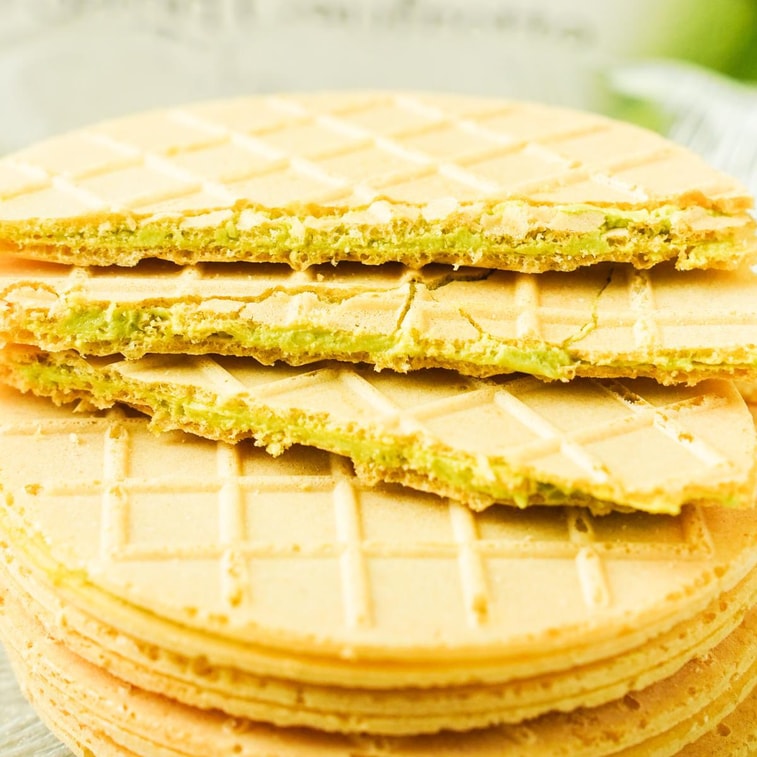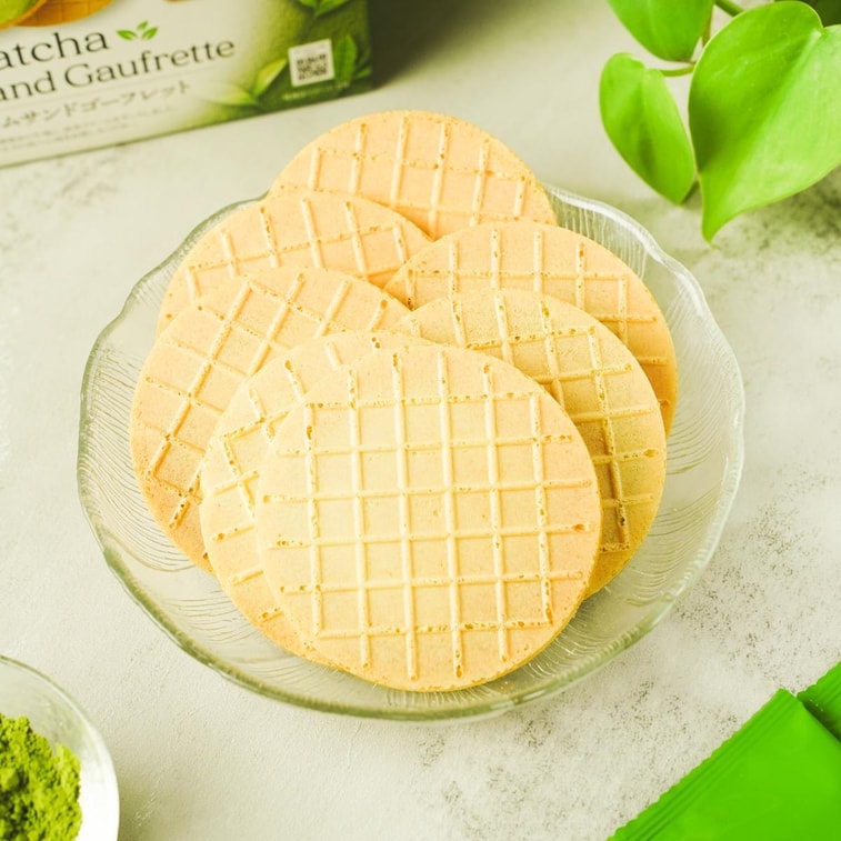 日本NIKKO日光 Sand Gaufrette法式奶油夹心薄脆松饼 三明治威化饼干 抹茶味 10枚 80g【点心伴手礼】