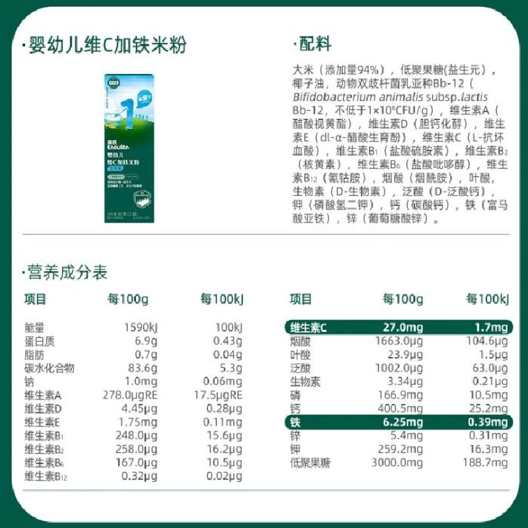 【中国直邮】 英氏 婴儿高铁米粉 试用装英式米粉试吃30g/盒