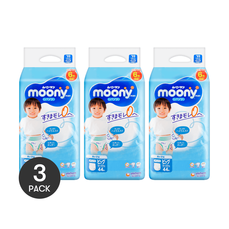 【囤货3包】日本MOONY尤妮佳 畅透系列 婴儿拉拉裤 男宝宝专用纸尿裤 XL号 12-22kg 增量装 44片*3