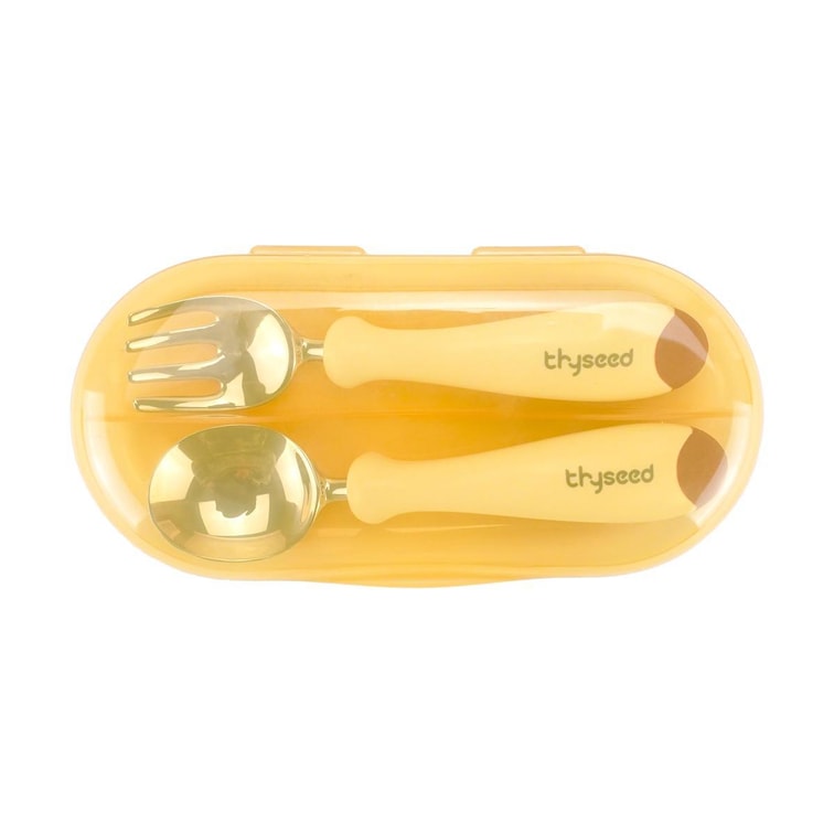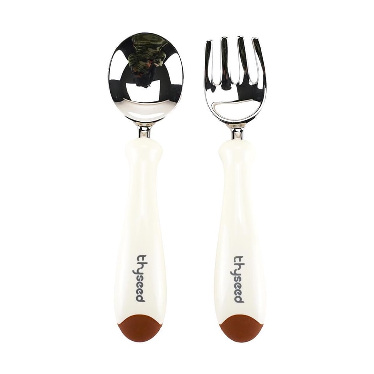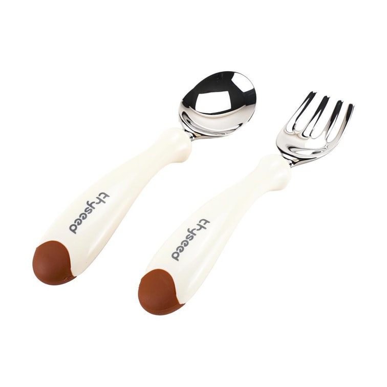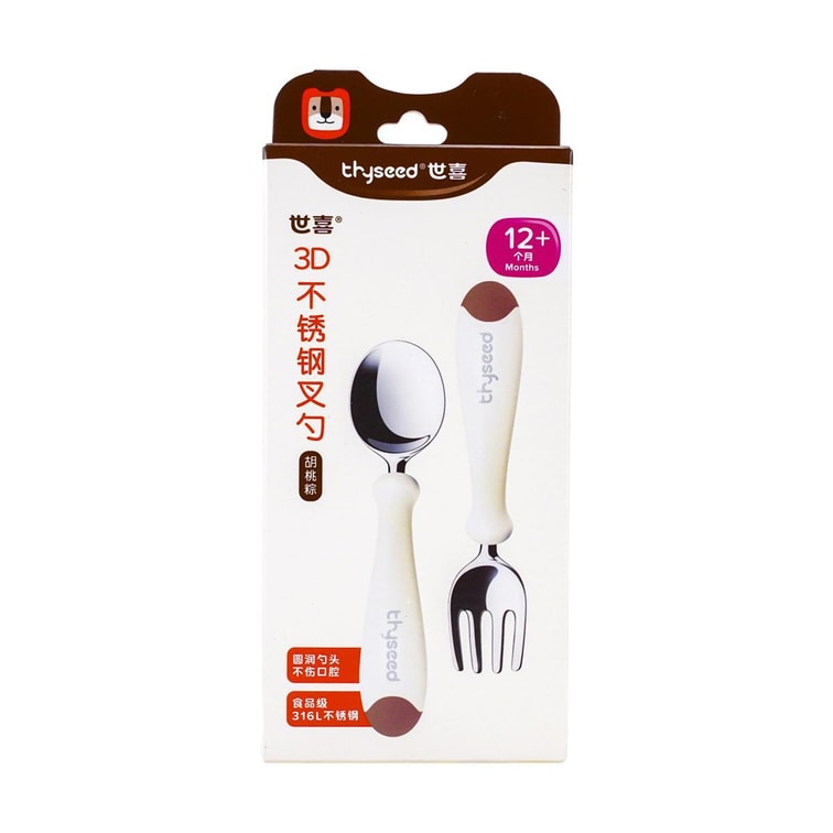 THYSEED世喜 宝宝不锈钢叉勺 儿童学吃饭训练叉子勺子饭勺 胡桃棕