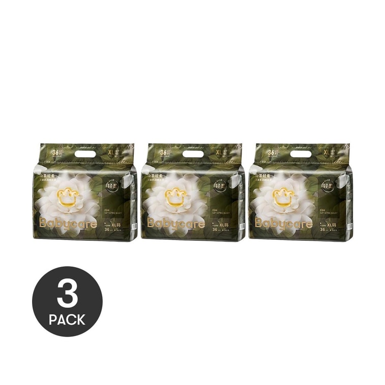BC BABYCARE 尿不湿 XL码-36片/包 适用月龄12个月以上 12-17kg *3 山茶轻柔婴儿纸尿裤 腰贴型纸尿裤 【3份超值装】