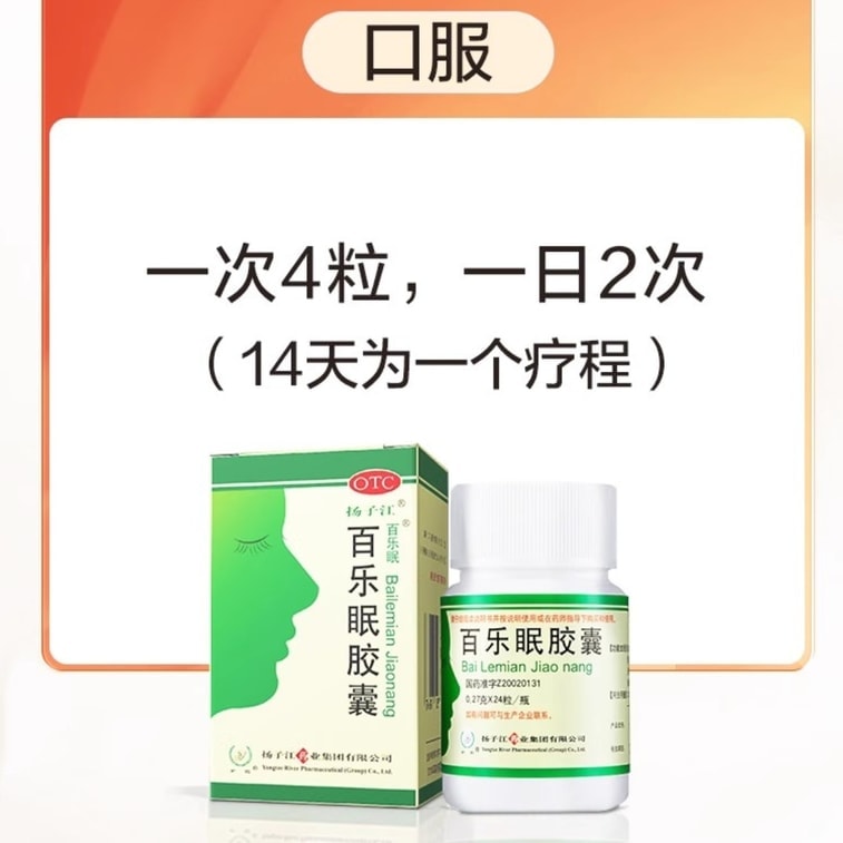 【中国直邮】 扬子江药业集团 百乐眠胶囊 失眠多梦中药调理安神药改善睡眠入睡困难 24粒/盒