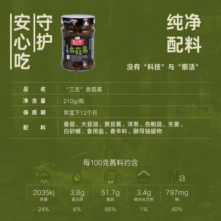 【中国直邮】百山祖香菇酱蘑菇酱拌面酱下饭菜佐餐素食酱蔬菜酱 210g*1瓶