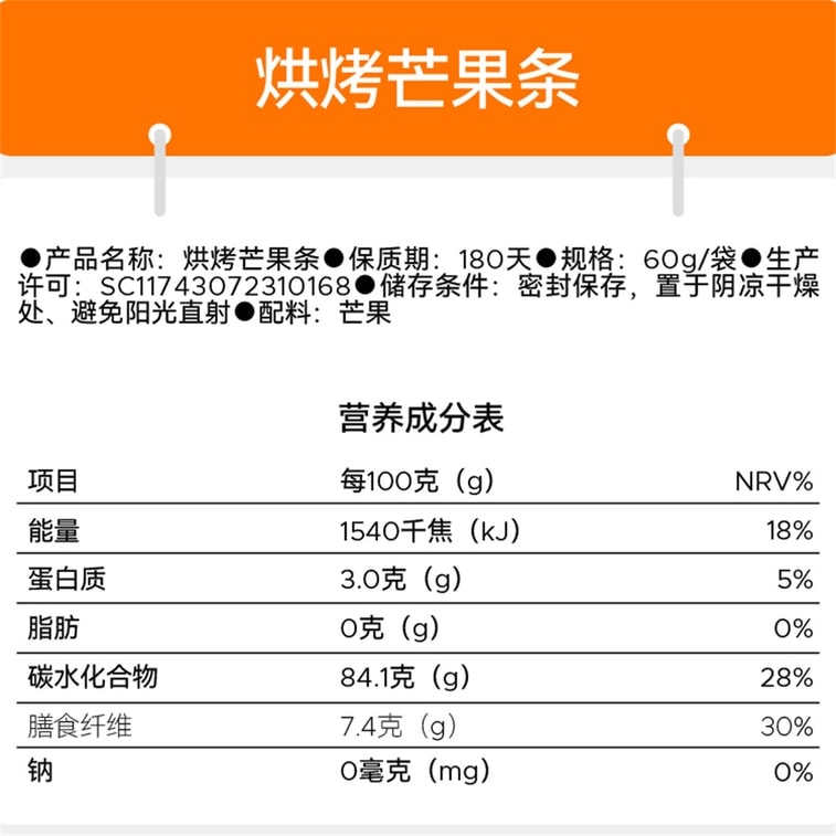 【中国直邮】 无趣的店 烘烤芒果条 芒果干果脯追剧孕妇解馋健康休闲零食小吃 60g
